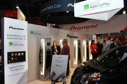 中でも力を入れているのが「Connected Car」ソリューション。パイオニアは、サードパーティーとしていち早くアップルのCarPlay対応ヘッドユニットを市販したメーカー。説明員に話を聞くと、米国ではすでに11機種がCarPlayに対応しているのだという。さらに最近では、Androidスマートフォンと連携するAndroid Autoにも力を入れている。