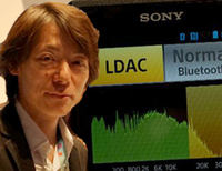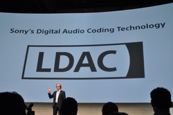 今回ハイレゾを軸とした商品展開として、3つ新しいテクノロジーと機能を展開しているという高木氏。最初に挙げるのは高音質のワイヤレス通信を実現する「LDAC」。これはBluetoothでこれまでの信号領域を超える、約3倍の情報量をワイヤレス伝送できるというコーデック技術だ。高木氏は「ハイレゾに近い高音質をワイヤレスで送信できる技術の普及に努めていきたい」と期待を寄せる。