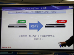 そのほかのトピックとしては、8機種とも、新しい著作権保護規格SeeQVaultに対応するアップデートを5月に予定している。さらにシャープでは、2013年1月以降に発売した既存の同社製BDレコーダーも同時期にSeeQVault対応アップデートすることをアナウンス(関連ニュース)。同社製BDレコーダーにおけるSeeQVault機能のサポートは、このアップデートにおける対応が初めてとなる。