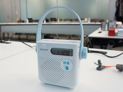 「ICF-S80」は、IPX4相当の防沫性能を備えた小型ラジオ。キッチンやバスルームでの使用を想定しており、単2乾電池3本で駆動する。モノラルスピーカーながら「シャワーや洗濯の音に負けない大音量を出せる」としている。