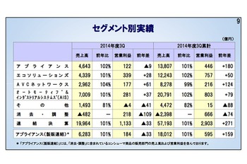 パナソニックは、2014年度第3四半期の累計連結業績を発表。売上高、営業利益ともに前年同期より伸びたものの、純利益は前年同期比58%となる1,404億円となった。また、一部メディアで報道されていた中国での液晶テレビ生産終了が正式発表された。