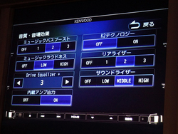 加えて、従来のバスブーストを改善し「低音楽器のみ持ち上げ、ボーカルは持ち上げない」といった低音補正を3段階で調整できる「ミュージックバスブースト」機能や、小音量時に不足する低音と高音を補正する「ミュージックラウドネス」機能なども搭載。走行速度とAV音量に連動してリアルタイムに音質を自動補正する「Drive Equalizer+」を搭載し、同機能の効果を9段階で調整できるほか、音場を「チャーチ」「ライブアリーナ」など6種類のホールシミュレーションから選択して設定することもできる。