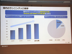 植松氏は「ソニーが培ってきたオーディオの技術と、最新のセンシングやソフトウェアの技術を融合させることにより、ランニングシーンに新しい体験を提供していく」と、Smart B-Trainer投入の背景を説明。このように伸長しているランニングデバイス市場に向け、既に顕在化しているニーズに対して「ランニング中に音楽を楽しむ」「ランニングログの取得」といった効果的な機能によるアプローチを行っていく。