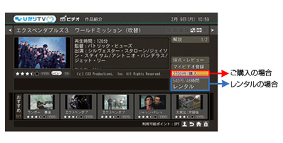 利用する場合は、ひかりTVに加入のうえ、対応するコンテンツの作品紹介画面上で「購入ボタン」を選択すれば良い。なお、既存のひかりTV対応チューナーで一部対象外のものもあるとのこと。また、「エントリープラン」「バリュープラン」に加入し、iTunes/Google/docomo SPモード課金を利用している場合は本サービスを利用できない。