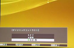 なお、全黒画面時に光源を消す機能は「ダイナミックコントラスト」という名称で、メニューから「オフ」「標準」「高速」の3段階で調整できる。高速を選ぶと、全黒になったらスピーディーに画面が真っ暗になる。