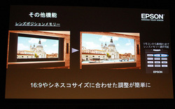 レンズポジションメモリー機能も搭載しており、16対9やシネスコサイズに合わせた調整がかんたんに行える。