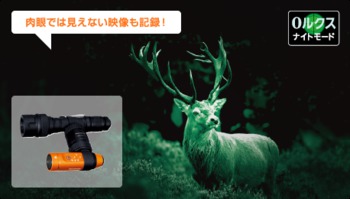 水深1.5mで30分までの撮影が可能な防水機能(IPX8相当)、IP6X相当の防塵機能、厚さ3cmの合板上で1.5mの高さから落としても壊れない耐衝撃性能、マイナス10度までの耐寒機能を備えており、各種スポーツやレジャー時にも活躍。さらに、付属のガラスカバー(ナイトモード用)を取り付けて市販の赤外線ライトを使えば、0ルクスの真っ暗闇でも撮影が可能となる。また、スローモーション撮影機能なども用意されている。