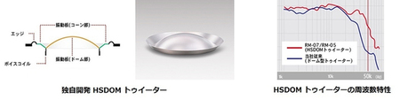 TAD Labsの技術をもとに、デスクトップなどニアフィールド環境にあわせて新開発した同軸ドライバーを搭載。1.5インチのアルミニウムHSDOMトゥイーターと、6.5インチアラミド繊維ウーファーで構成されており、周波数特性は「RM-07」が40Hz〜50kHz、「RM-05」が45Hz〜50kHz。ハイレゾ音源などもクリアに再生できるとしている。ドライバーに搭載されたウェーブガイドは新開発のもので、指向性を制御してユニット間の干渉を抑えるとともに、近くに壁などがある際の反射影響を低減するという。