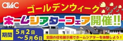 アバックは5月2日から5月6日のゴールデンウィーク期間中に、全国5ヶ所(東京、神奈川、大阪、福岡)の住宅展示場にて「ホームシアターフェア」を開催する。