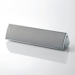 【SPEC】●Bluetoothバージョン:ver.4.0 ●対応プロファイル:A2DP/AVRCP/HFP/HSP ●対応コーデック:SBC/AAC/aptX ●使用ユニット:40mmフルレンジ×2 ●最大出力:3W+3W ●接続端子:USB microB、AUX-IN端子 ●連続再生時間:最大10時間(SBC使用時) ●外形寸法:185W×47.5H×50Dmm ●質量:約275g