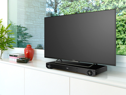 【SPEC】<アンプ/チューナー部>●実用最大出力:70W(フロント…18W+18W、サブウーファー…34W) <スピーカー部>●使用ユニット:フロント…25mmバランスドーム型(トゥイーター)、アコースティックサスペンション型 43×120mmコーン型(ウーファー)/サブウーファー…Built-inタイプ、バスレフ型、100mmコーン型 <機能>●接続端子:HDMI出力×1、光デジタル音声入力×1、アナログ音声入力×1(ステレオミニ) ●Bluetooth対応コーデック:SBC ●消費電力:約21W(待機時 約0.5W以下) <総合>●外形寸法:約702W×79H×311Dmm ●質量:約6.5kg