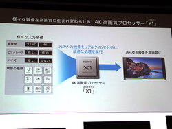 また音質面についても、オーディオメーカーでもある同社の音声技術を投入していることをアピール。河野氏は「4Kテレビの場合、普通は画質を中心に訴求を行うが、ソニーとしては高音質があることでより高画質映像が楽しめると考えている。画と音、両方のクオリティにこだわった」と述べた。