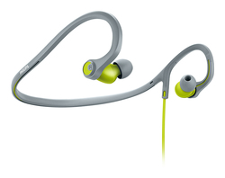 SHQ4300は、スポーツヘッドホン“ActionFit”シリーズのネックバンド型イヤホンで、オレンジ/ホワイト、グリーン/グレーの2色を用意。柔軟性のあるワイヤーを内蔵したネックバンドで頭部を左右から挟み込むことでイヤホン部を確実に耳にフィットさせ、ズレやイヤホンの落下を防ぐ。IPX4/IPX7準拠の防水性能を備えており、水洗いすることも可能だ。