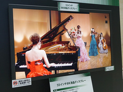 また、別ブースでは8K放送でも採用されるBT.2020をカバーするレーザーバックライト液晶ディスプレイも展示。三菱電機によるもので、50インチの4K対応モデルだが、将来の8K対応を睨んでの展示だという。
