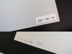 また、8K用の音響透過スクリーンも展示。従来の音響透過スクリーンでは穴の繰り返しピッチが大きく、8Kの最適視聴距離では穴の繰り返しが見えてしまったり、音が通っても高域で減衰するといった問題があった。これに対し、穴の繰り返しピッチを画素より小さくし、音の減衰も少ないスクリーンを開発したという。