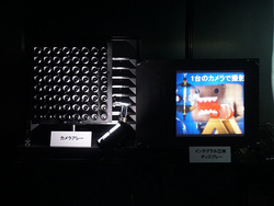 「インテグラル立体テレビ」は、微小レンズ群からなるレンズアレーを撮影と表示の双方に用いて立体像を再現するというもの。いわゆる裸眼3Dを実現できる技術で、今年は昨年よりもカメラの数とレンズアレーを構成する微小レンズの数を増やすことにより、約10万画素のインテグラル立体像の撮影を実現した。
