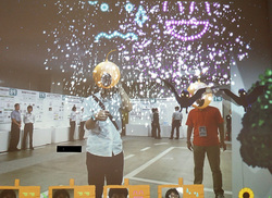 このほかにも、画面に表示されている物体を実際に触っているかのような感覚を味わえる「触ってみよう」や、液晶テレビのカラー表示の原理である光の三原色を実際に確認できる「色を見てみよう」、そして画面の前の参加者の表情を読み取り、その表情に応じて笑顔や困った表情などの柄の花火を打ち上げる「表情を出して遊ぼう」といった展示も用意されている。