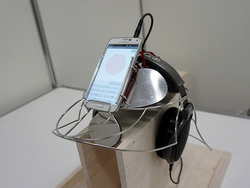 来場者自身が参加する体験型展示も用意。スマートフォンを貼り付けたヘルメット型のヘッドホンをかぶって22.2chの3次元音響を体験できる「音をかぶろう」など4種類のデモを展開している。