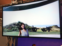 そして大画面化・多画素化に有効という、バックチャンネルエッチ構造のこのITZO-TFTと、長寿命化に有効な逆構造有機ELを用いたフレキシブルディスプレイを開発。折り曲げることも可能なこのフレキシブル有機ELディスプレイを大型化させることで、将来の大画面シート型8Kディスプレイ実現を目指すとしている。