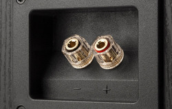 金メッキ処理を施したスピーカーターミナルはネジ式を採用。バナナプラグにも対応している。付属品として約2.5メートルのOFC(無酸素銅)スピーカーケーブルを2本同梱。