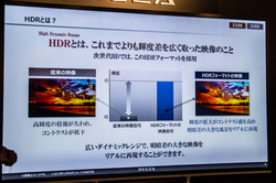プレス向け説明会の会場には、Z10Xの現バージョンと、HDR対応バージョンの両方が用意され、HDR映像を再生しての比較デモを実施。同社が撮影したHDRコンテンツが再生されたが、HDRによる効果は歴然。あとはHDRコンテンツの登場に期待するところだ。