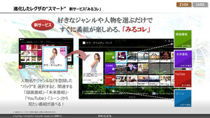 「TimeOn」は、2012年10月に開始されたサービスで、ネットで話題のシーンを再生できる「みどころシーン再生」や、興味あるキーワードを選択するだけで自動的に録画予約を実現する「おまかせ録画コミュニティ」などを提供してきた。これらが今回刷新され、9月のバージョンアップ対応により「みるコレ」としてZ10X/J10Xにて提供される。なお、こちらの記事で紹介しているG20Xについても、7月より本サービスが開始される。
