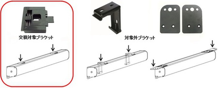対象製品は下記の表に明記された製品の中で、下図の赤枠で示したセッティングブラケットを使用しているもの。該当セッティングブラケットを使用していないスクリーンおよび下記の表に該当しないスクリーンについては、交換の必要はないとのこと。
