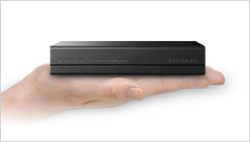 筐体には、深夜の予約録画中でも気にならないようにランプレス設計を採用。また、3.5インチHDDと比べて発熱の少ない2.5インチHDDを採用することで、ファンレス構造を実現した。外形寸法は134W×26H×78Dmmの手のひらサイズ。