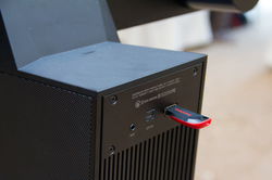 AK T1は同社のハイレゾオーディオプレーヤー「AK240」相当のプレーヤー機能、アンプ、スピーカーを1筐体に内蔵。ストレージは内蔵していないが、USB-A端子やmicroSDスロットを搭載し、microSDカードやUSBメモリーに保存した音源を再生可能。Wi-Fiを内蔵してネットワーク/DLNA再生機能も備えており、NASなどの保存した音源を再生することもできる。aptX対応のBluetooth機能も搭載している。AUX入力、光デジタル入力も装備する。