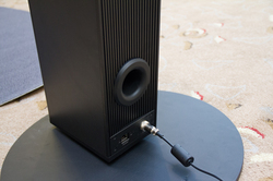 スピーカー部はトゥイーター、ミッドレンジ、ウーファーを各chごとに1基ずつ搭載。写真でわかるように、T字筐体の上横一列にトゥイーター/ミッドレンジ、縦部にはサイド側に向けてウーファーを配置している。ウーファー部のバスレフポートは背面に備えている。