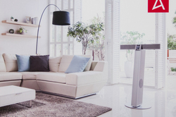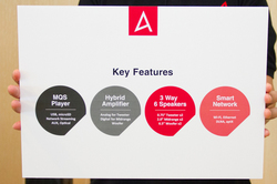 本機はラグジュアリーなインテリアや内装とマッチするようなデザインが検討されたようで、事前に公開されたイメージの他にも、複数の設置イメージがブースで公開された。仕様やデザインからも、オーディオマニアというよりは、家具と調和しつつ斬新なデザインと高音質を提供してくれるオーディオを求めるユーザーを想定していることがわかる。