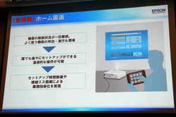 機能面については、どこに置いても画面の歪みを即座に補正する「ピタッと補正」機能や、タブレットやスマートフォンの画面をスクリーンにそのまま投写できる「Epson iProjection」機能を全モデルに搭載している。