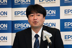ビジネスプロジェクターにおける4Kモデルなど今後の展開について、エプソン販売(株) VPMD部長 蟹澤啓明氏は「具体的な時期は言えないが、4Kモデルの展開も視野に入れて開発を進めている」と述べた。なお、4月に発売したホームシアター用4K対応プロジェクター「EH-LS10000(関連ニュース)」は予想を超えた売れ行きで、生産が追いついていない状況だという。
