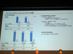 テレビなどが含まれるHE&S分野の売上高は、前年同期比13.8%減少し、2,531億円。液晶テレビの主に普及価格帯における販売台数の減少、および家庭用オーディオ・ビデオの市場縮小にともなう販売台数の減少などによるもの。