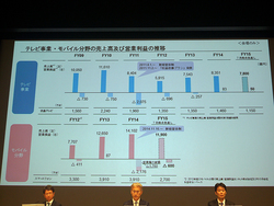 吉田氏は、モバイル事業について「事業規模を転換させていくフェーズにある」と、高付加価値モデル重視へシフトしていたずらに数を追わない戦略への方針転換について改めて言及。同様の方針転換で黒字化を達成したテレビを例に出し、「方針転換のタイミングでは構造改革費用もあるので大きな損失を計上するが、テレビでは3年かけて通期黒字化を達成した。モバイルは今期中に構造改革や事業規模の適正化を終える予定。構造改革は当初予定通り進んでいる」とした。