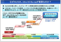 まず強調しておきたいのは、「最近では映像配信も盛んになってきていることもあり、Ultra HD Blu-rayでは画質に振っている」と小塚氏が断言するほど、高画質に特化した仕様となっていることだ。さらに、BDAからのライセンス開始のニュースでもお伝えしたとおり、今年のホリデーシーズンに向け、ソフトやハードの準備が着々と整っていることが確認できた。