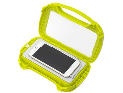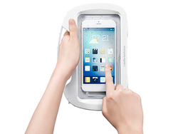 本体正面には液晶画面が観やすく、強度の高いシリコン製シートを採用。濡れた手でもスマートフォンなどの操作が可能となっている。
