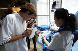そして巨大な「ATH-M50x」の下には、ATH-MSR7とAstell&KernのハイレゾDAP「AK Jr」を組合せて出演者のハイレゾ音源を楽しむことができるデモブースも用意されている。CDよりも情報量が多く、スタジオで録音されたマスター音源により近い音で楽しめる“ハイレゾ”。写真撮影をしながら、興味深そうに体験する来場者の姿が見られた。