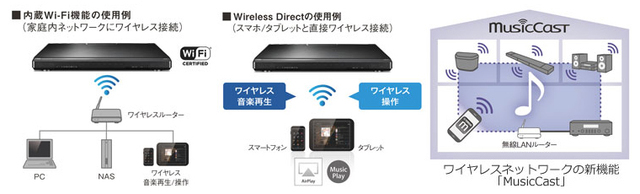 そのほか、対応する機能や搭載端子などのフィーチャーは2機種で共通している。いずれもWi-Fiを内蔵し、後述する新ネットワーク再生機能MusicCastに対応することが特徴となる。