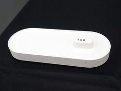 2,220mAhのリチウムイオンバッテリーを内蔵し、約3時間の充電で最大約16時間の使用が可能。クレードルに本体を置くことで充電できる。