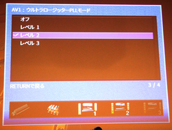 ウルトラロージッターPLL回路も搭載するが、ジッターの除去性能をより向上させていることが特徴。ジッター除去はレベル1/2/3/OFFの4段階で調整可能で、従来よりシビアなジッター処理を行う設定にしている。レベル3が最も強力で、同社によれば1Hzまでジッター除去するとのこと。DACのデジタルフィルターとウルトラロージッターPLL回路の3段階の組み合わせを好みで選択できる。