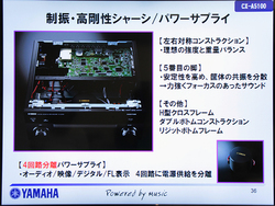 筐体はダブルボトム構造+H型リジットフレーム仕様で、内部は左右対称コンストラクションを投入。パワーサプライは従来では3分離構成だったが、本機ではオーディオ/映像/デジタル/FL表示の4回路に分離した構造としている。
