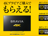 ソニーは、4K液晶テレビ“BRAVIA”「KD-84X9000」の4K/60p信号伝送およびHDCP2.2対応のための有償アップデートを本日9月1日より受け付ける。価格は35,000円(税抜)。受付期間は2016年3月31日18:00までとなる。