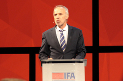 「IFAはホリデーシーズンに向けて新製品を有効にアピールできる場であり、市場に対する強い影響力を持っている。会期中の取引額は昨年は約42.5億ユーロ(およそ6,000億円)にのぼった。世界中からメディアが集結している場でもある」と、IFAのプレゼンスを説明した。