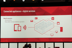 続いてZVEI(ドイツ電機工業会)のチェアマンであるReinhard Zinkann氏が登壇。2015年のキーワードは「スマート」であると説明。ネットワーク対応製品というハード単体だけでなくサービスを組み合わせることが成功のカギであるとし、特に日常生活の中心であるキッチン周辺や、バスルーム等向けに、スマート化のメリットを活かした製品のチャンスがあると語った。