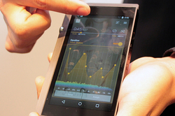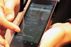 GUIは片手で全て操作できるよう配慮されたデザイン。音楽再生中の画面を下にスクロールすると、すぐにグラフィックイコライザーにアクセス可能。上部にスライドするとプレイリストを確認することができる。ジャケット写真表示はON/OFFを選択可能。