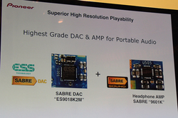 DACはESS製の「ES9018K2M」を採用。ヘッドホンアンプには、パイオニアのオーディオコンポーネントでも採用されているSABRE「9601K」を搭載している。アンプ部の出力は75mW+75mW(32Ω時)。インピーダンスは16〜300Ω。再生可能なフォーマットは384kHz/24bit PCM(WAV/FLAC/ALAC/AIFF)および11.2MHz DSD再生に対応。さらに、今後アップデートによってメリディアンのロスレスフォーマット「MQA」再生に対応することも発表された。※記事初出時、DSDについてネイティブ再生が可能と記載しましたが、これは誤りでした。お詫びして訂正致します。