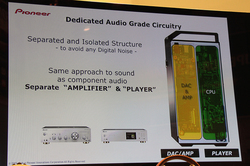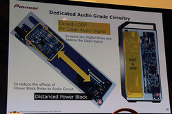 内蔵回路はパイオニアのオーディオ開発ノウハウを活かし、DAC&アンプ部とCPU部をセパレート。デジタルノイズの干渉を防いでいる。さらに、パワー部とオーディオ部は離して配置している。