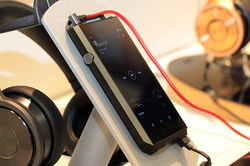 接続端子は、本体上部に3.5mmステレオミニ端子、本体底面にmicroUSB端子を用意。microUSB端子からは384kHz/24bitに加え、11.2MHz DSD信号をPCM変換して出力が可能とのことだ。なお、パイオニア「XPA-700」やオンキヨー「DAC-HA300」との接続では、11.2MHz DSDをネイティブ出力することもできる。
