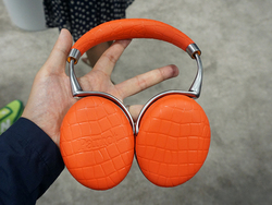 ブースにはブラックとオレンジの2色が用意され、実際に試せるようにもなっている。そのほかにもカラーバリエーションを用意し、クロコダイル柄のCroco Noir/Croco Vert/Croco Rouge/Croco Marron、ステッチの入った革製品のような見た目のSurpique Noir/ Surpique Cream、従来モデル「Zik 2.0」と同じテイストのGrene Noirという全7色で展開する。